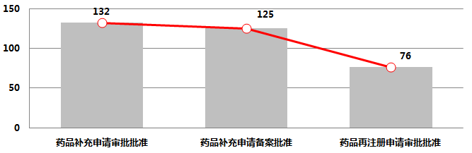 第四部分药品监督管理一、省局行政审批情况2018年上半年,省局药品补充申请审批批准132件,其中中药天然药物61件,化学药品71件,未批准6件;药品补充申请备案批准125件,其中中药天然药物84件,化学药品41件。药品再注册申请审批共批准76件,其中中药天然药物33件,化学药品42件,生物制品1件,全部为国产药品。详见附表5、6。 图4-1-12018年上半年全省药品审批情况表