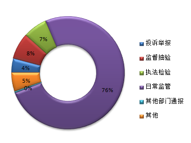 六、药品案件查处情况2018年上半年,各级监管机构共查处违法药品案件总数2459件,其中一般程序案件1764件,简易程序案件695件,货值金额1077.06万元,罚款金额1275.61万元,没收违法所得金额267.56万元;取缔无证经营2户,捣毁制假售假窝点3个,责令停产停业20户,吊销经营许可证7件,移送司法机关案件数63件,行政处罚案件信息公开数1074件,符合公开条件的行政处罚案件1090件。 从案件来源看,投诉举报120件,监督抽验363件,执法检验139件,日常监管和专项检查1684件,其他部门通报58件,其他95件。 从货值来看,5万元以下的案件2443件,5万元以上的案件16件。 图4-6-12018年上半年全省药品案件来源分布图 七、地方药品抽检情况2018年上半年,全省共抽验药品主体2004家,抽验2574批次,检验不合格211批次,不合格率8.2%。其中国家基本药物抽验主体524家,检验646批次,检验不合格36批次,不合格率5.6%。 八、药品投诉举报情况2018年上半年,全省共受理药品投诉举报1495件,占投诉举报总量(食品、保健食品、药品、AG百家乐娱乐、化妆品)的6.9%。立案116件,结案87件,移交司法机关2件。 九、食品药品监管部门查办侵权假冒案件情况2018年上半年,生产销售假药立案173件,货值金额411.01万元,捣毁制假售假窝点1个,行政处罚案件信息公开数43件,符合公开条件的行政处罚案件42件;生产销售劣药案件共立案546件,货值金额25.6万元,捣毁制假售假窝点1个,行政处罚案件信息公开数268件,符合公开条件的行政处罚案件267件。 十、药品广告审批及查处情况2018年上半年,全省共审查核发129件,给予批准文号129件,其中视5件,声1件,文123件。广告复审批准文号3件,总局责成纠正3件,收回批准文号3件,采取暂停销售措施的次数4次,移交工商行政管理部门的违法广告1055件,全部为篡改审批内容并已发布的违法广告,发布违法保健食品广告公告1期,发布公告的违法广告数3件。详见附表10。